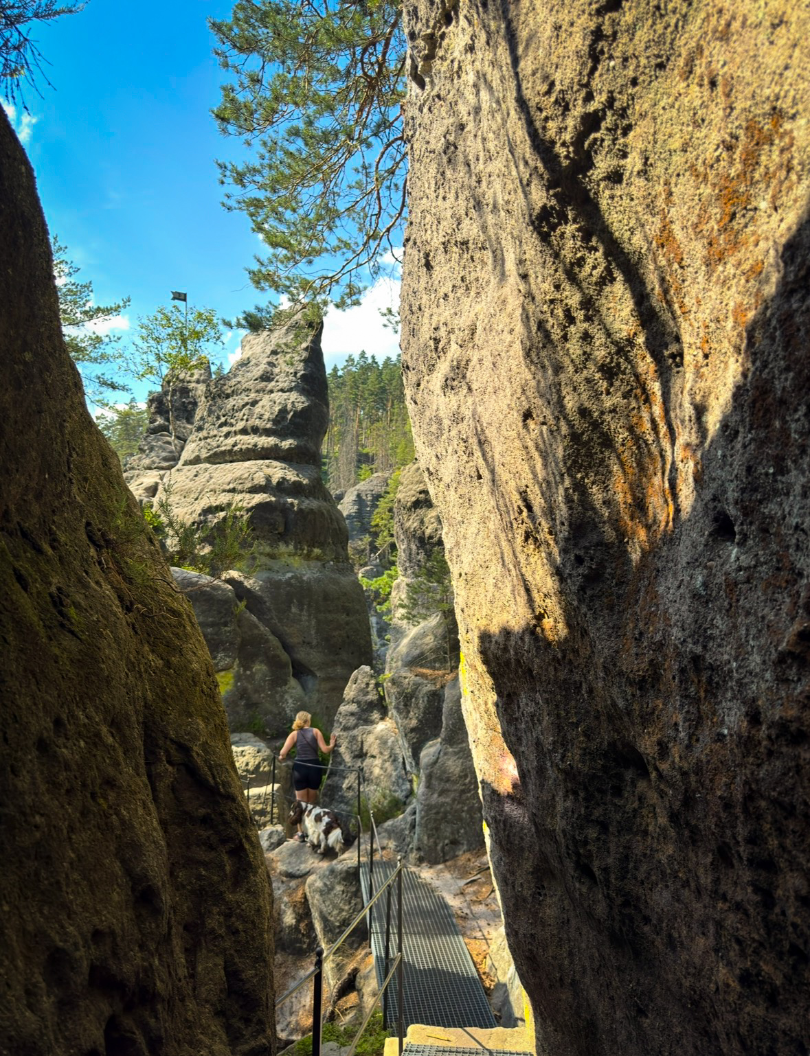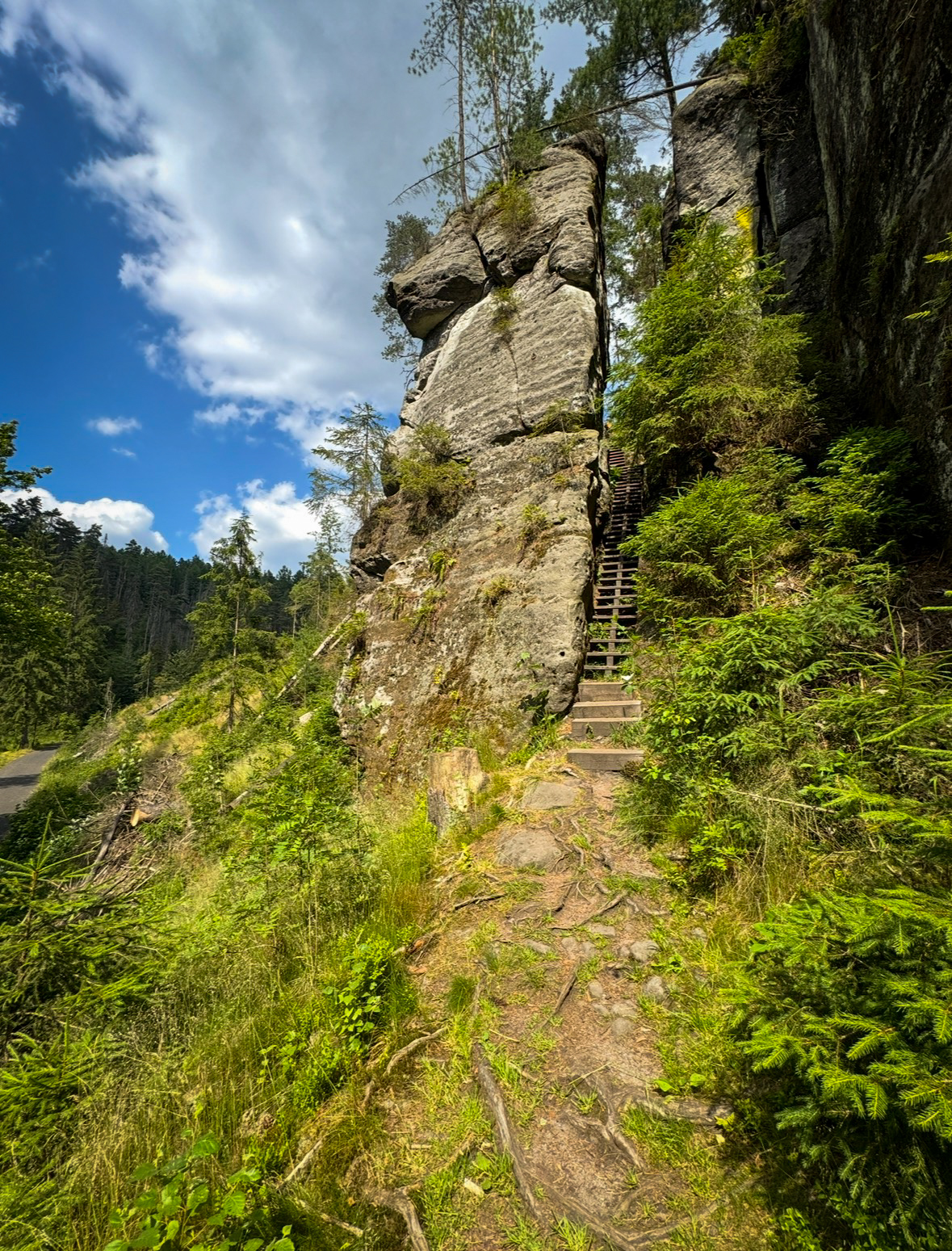 Vhodnost pro rodiny: Část trasy je pohodlná i pro mladší děti, kočárky (zpevněná cesta) – avšak na skalní stezku a žebříky je třeba turistická obuv.